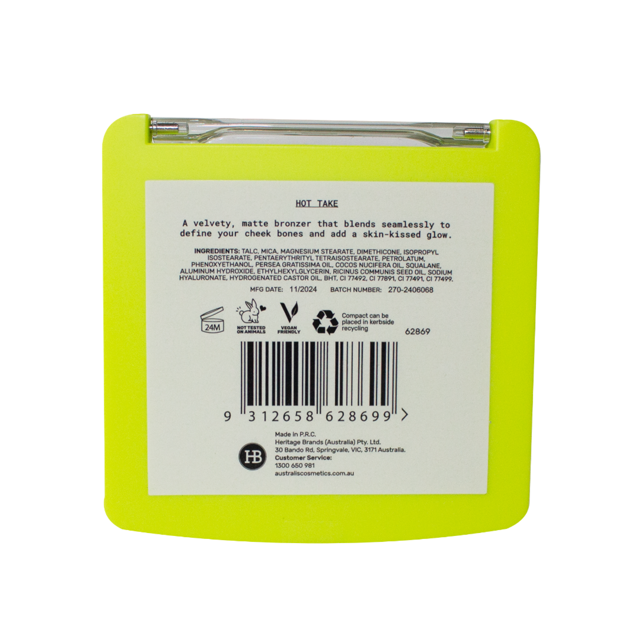 Golden Hour for Your Face. Say hello to a golden-hour glow with our velvety, matte bronzer that blends seamlessly to define your cheek bones and add a skin-kissed glow. With lightweight, blendable pigments, this silky soft formula enhances your skin with natural-looking colour. Infused with skin-loving vegan Hyaluronic Acid and Squalane for healthy looking skin.